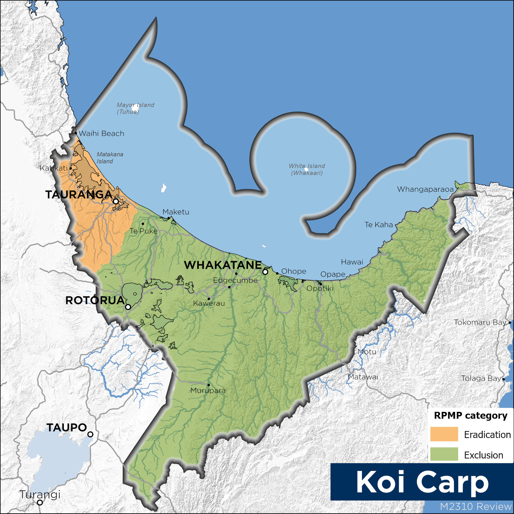 - Koi carp are present in selected locations in western Bay of Plenty.
