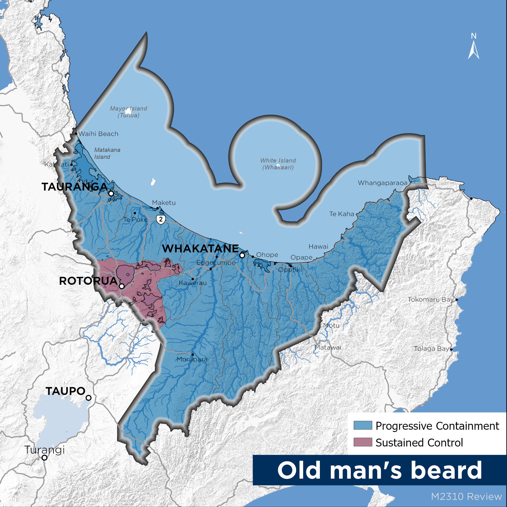 Old man’s beard is sustained control in the Rotorua district and progressive containment throughout the rest of the Bay of Plenty. This means that landowners/ occupiers are responsible for its control throughout the Bay of Plenty. However, in the Rotorua district occupiers/landowners must control Old man’s beard within 10m of any property boundary where the adjoining occupier is also controlling it or if directed by an authorised person. Please refer to the map on this pager to determine which rules apply to your area.