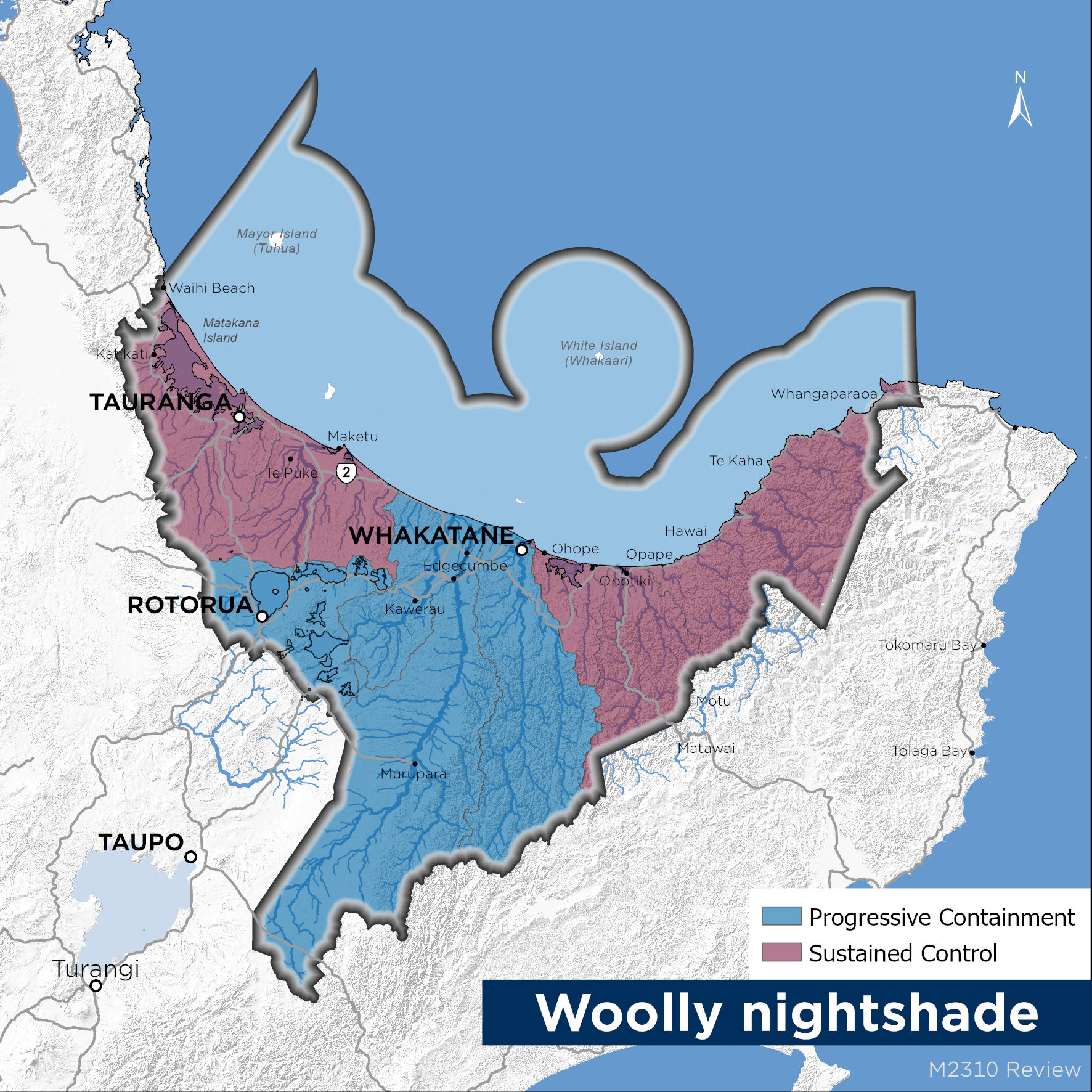 Woolly nightshade is established and widespread throughout several areas within and surrounding Tauranga. Smaller infestations exist in eastern Bay of Plenty and the aim is to reduce these. It is very sparse in the Rotorua area and council is keen to stop it from becoming established here.